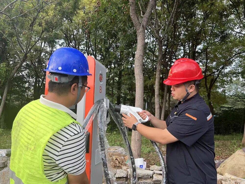 10月1日,国庆假期第一天,济南能源港沟中学北快充站项目建设正有序推进,济南能投集团能源环保充换电项目部员工滕家辉正在进行充换电设备进场检查及验收,为后续充电设备的调试及安全运行筑牢根基,保障工期按时完成。