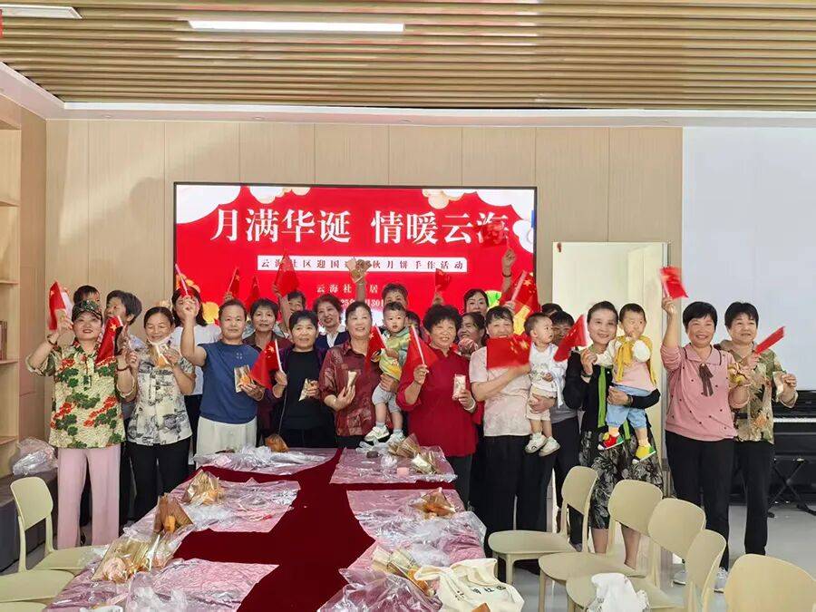 孙村街道云海社区举办“月满华诞,情暖云海”主题活动。活动分为两大环节:首先组织居民巧手制作月饼,大家在欢乐互助中感受传统节日的温馨氛围;随后,社区工作人员带着亲手制作的“暖心月饼”走访慰问老党员,聆听奋斗往事,传递组织的关怀与牵挂。整个活动营造了喜庆团圆、敬老爱邻的和谐社区氛围。