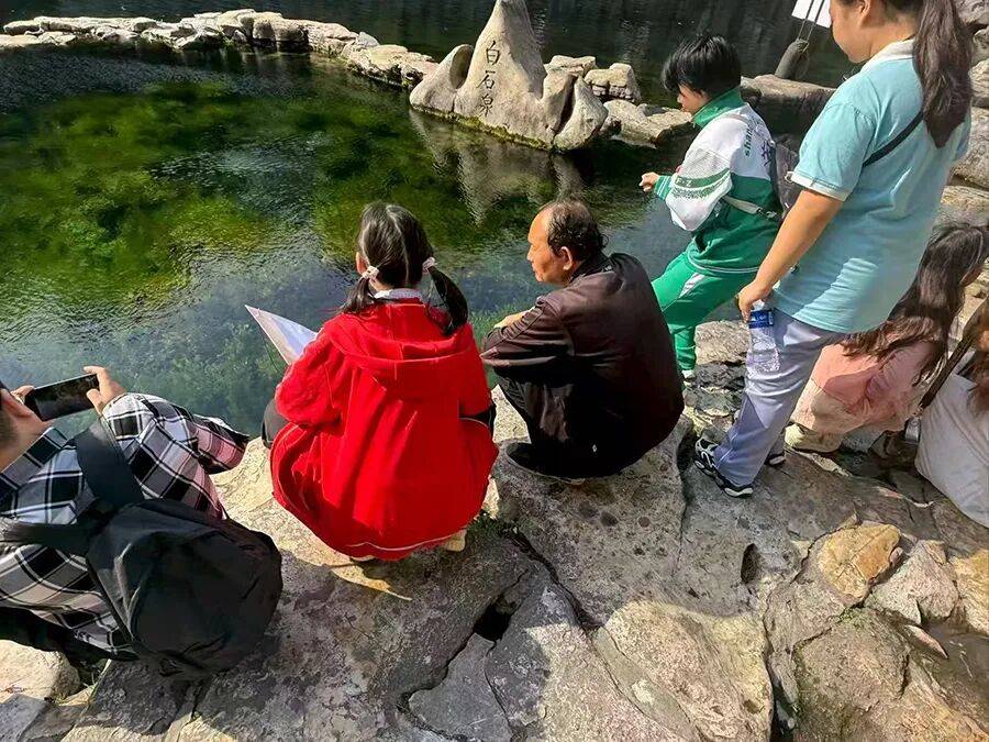 在白石泉边,做为泉城的孩子,人人都有一颗爱泉的心。同学们对泉城的热爱可不是仅限于口头上,更是付诸于实际行动,为来往游客介绍泉水、介绍泉城。微光成炬,凝星成河。