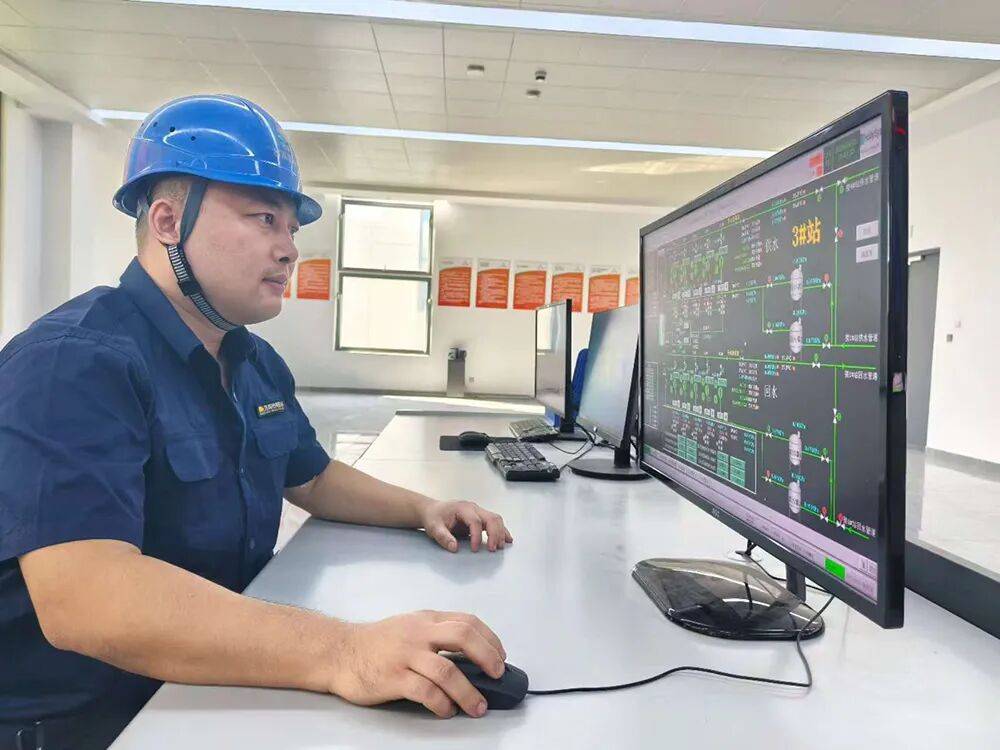 济南能源集团所属济南热电西部热源分公司“石热入济”3,司家辉上午九点准时到控制室进行补水启动系统监护,严格把控压力、流量、温度等关键参数,确保补水系统运行平稳。