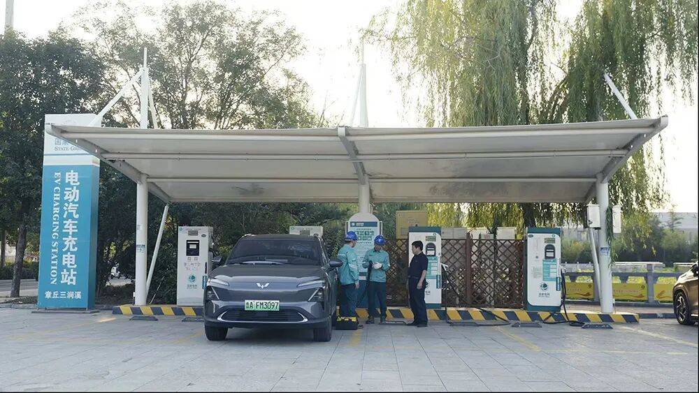 10月1日,国庆假期第一天,在济南能源黄岗超充驿站,孙凯与场站工作人员对场内充电设备、消防设施进行安全检查,巡视设备运行情况,以“远程监测 + 现场巡查” 的双重模式,守护场站运转,为广大车主做好保驾护航。
