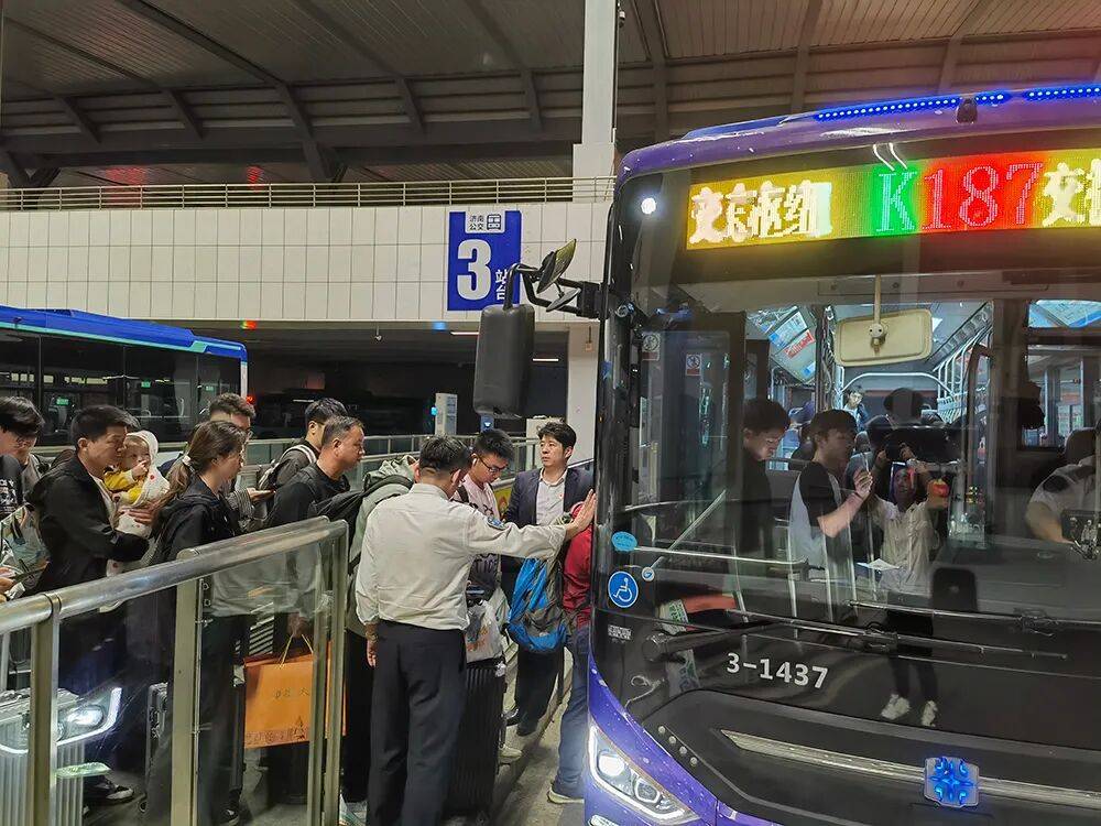 10月1日零时至拂晓,济南西站迎来11趟临客列车。为应对大客流压力,济南公交西部分公司提前启动响应预案,动态加密K109、K202路等4条重点线路班次,高峰时段发车间隔压缩至5至6分钟。同时依托“联勤+党建”双驱机制,24小时精准对接列车动态,通过精准投放运力、服务靠前保障,全力以赴做好高铁临客接驳疏散工作,实现旅客“即到速疏”。