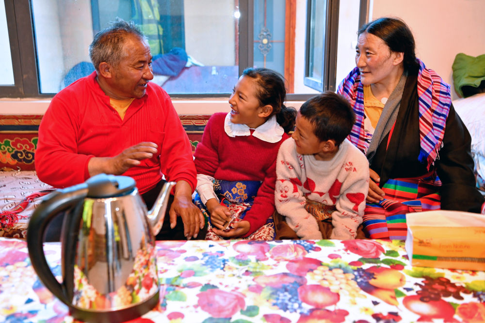 2023年11月15日,拉萨市当雄县中学生斯曲卓玛(右)和爸爸、妹妹在一起。斯曲卓玛和班里其他51名同学均来自草原,目前在学校接受现代化的双语教育。在国家支持和组团式教育援藏帮助下,西藏逐步建立起涵盖学前教育、基础教育、职业教育、高等教育、继续教育、特殊教育的现代教育体系,落实农牧民子女“上学无负担”措施,教育质量稳步提高。