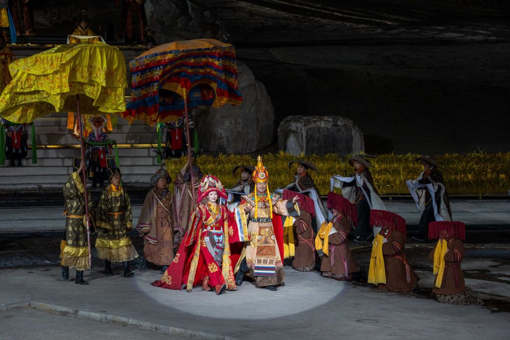 2024年3月12日,大型实景剧《文成公主》第12季在拉萨正式开演。近年来,西藏深入实施中华优秀传统文化传承发展工程、文化“润边”工程、新时代西藏文艺创作质量提升工程等,大力推动文旅融合发展,依托科技手段将汉藏民族的民俗、诗词、图腾、舞蹈、音乐等元素以多维度影像呈现在观众面前;挂牌立碑138处红色文化遗存和革命遗址、西藏地方与祖国关系历史遗存;建立完善五级公共文化服务体系,专兼职文艺队伍突破10万人。丰富的民族传统文化传承发展实践,有力增强各族群众的认同感,促进交流理解。