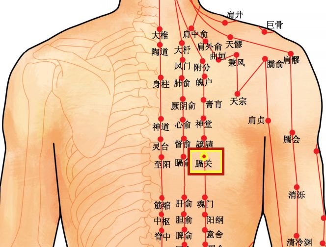 【出处】《针灸甲乙经》:“背痛恶寒、脊强俯仰难、食不下、呕吐多涎,膈关主之。”